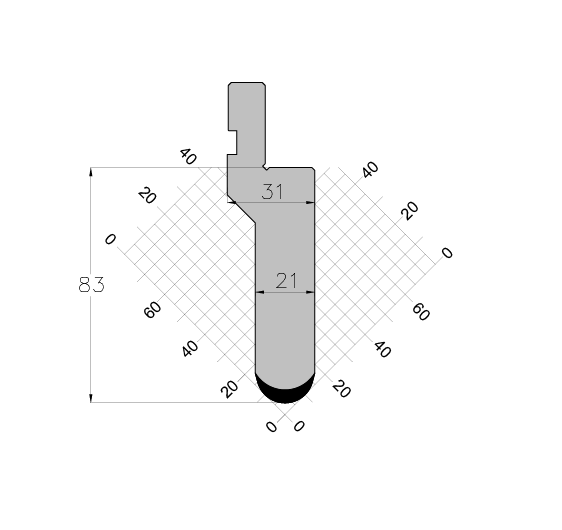 Product: ES PUNCH 30° R10 H83 L835 mm, Length mm: 835, Height mm: 113, Useful Height mm: 83.
